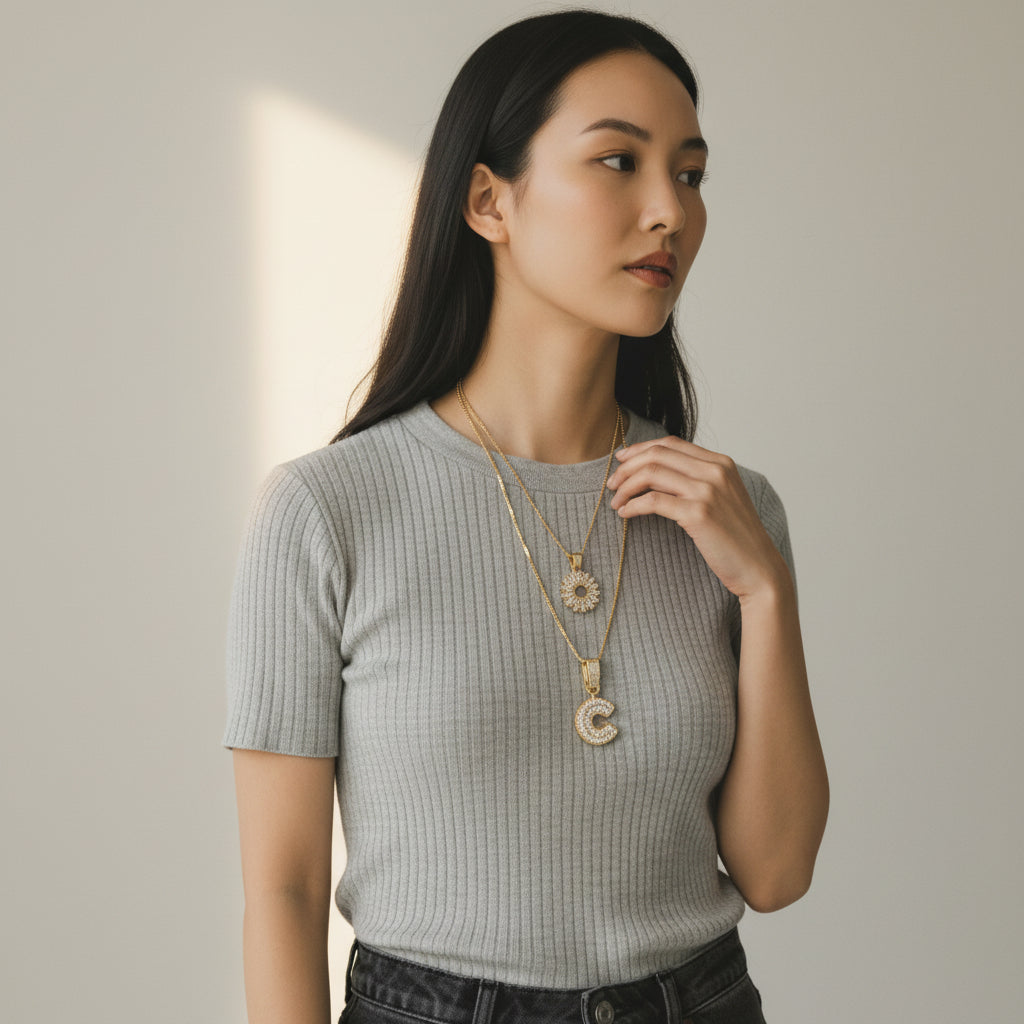 Verleihen Sie Ihrem Look (oder gönnen Sie sich selbst) einen Hauch zeitloser Eleganz mit unserer luxuriösen Initialen-Halskette – ein edles Schmuckstück, erhältlich für alle Buchstaben von A bis Z. Diese prachtvolle Goldkette wurde entworfen, um jedes Dekolleté zu betonen und vereint Modernität, Raffinesse und Prestige.